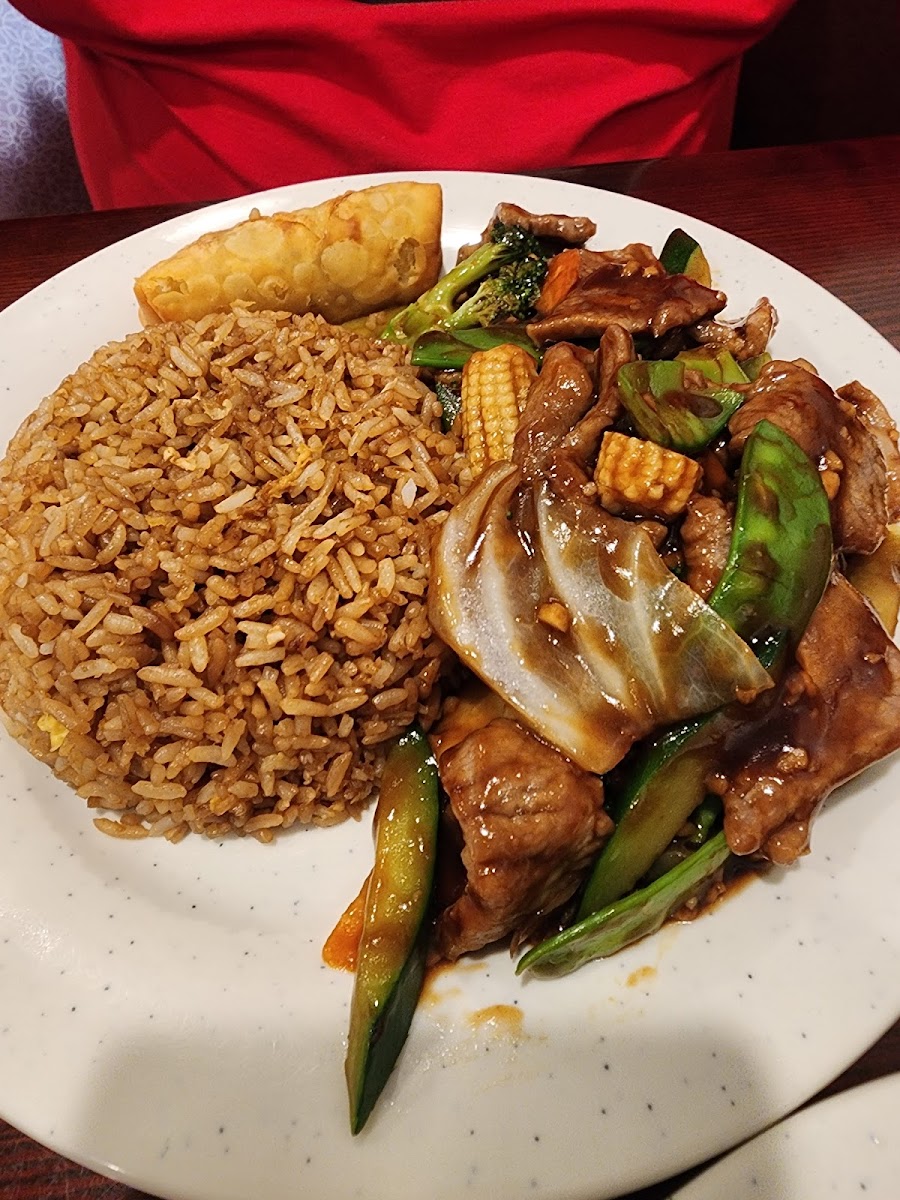 Great lunch menu. Good size portion, 10,75 included a drink with refills. Food was flavorful and a expected. I ordered chicken with mixed vegetables.